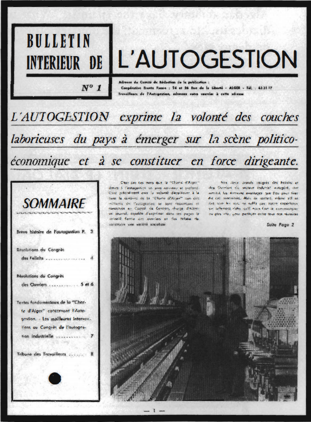 Almost sixty years ago in 1962, Algeria broke free from French state control, after a seven year long militarised campaign of bombing, armed resistance, and workers struggle, largely organised by the Algerian Front de Libération Nationale (FLN). The campaign for political independence had escalated from bombings to assassinations to full scale insurgency, with the French state resorting to torture, civilian bombings, and military occupation to protect its colonial holding. The victory of the independence movement saw a massive re-organisation of the political system by a socialist leaning president Ben Bella who was tasked with constituting the new independent Algerian state, as well as managing an explosion of autogestion, a movement of workers’ self-management of industries and communities by workers collectives.